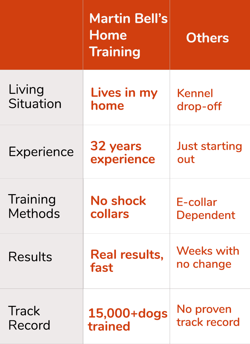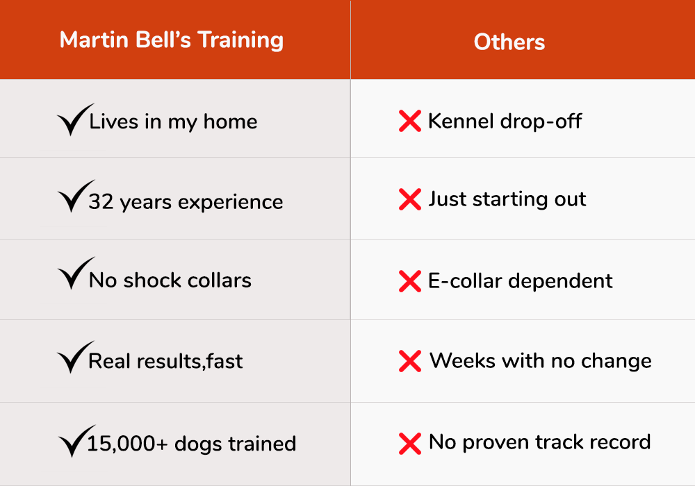 ✓ We don’t use e-collars, shock devices, or shortcut tricks.